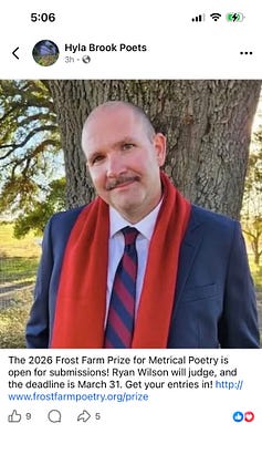 Frost Farm Poetry Contest is open, and the judge is my professor, the poet, critic and translator, Ryan Wilson!