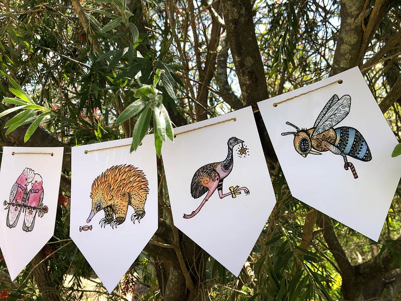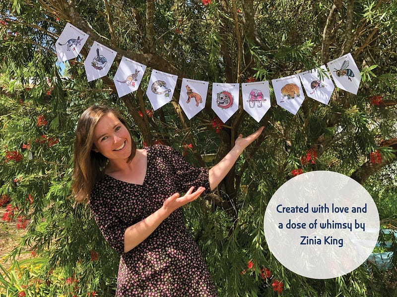 Printable Australian Animal Christmas Bunting. Designed by Adelaide Hills based artist Zinia King with love and a touch of whimsy. The whimsical watercolour depictions of Australian Animals with subtle Christmas hints will definitely wow your guests this Christmas. An easy 'print-yourself' C…