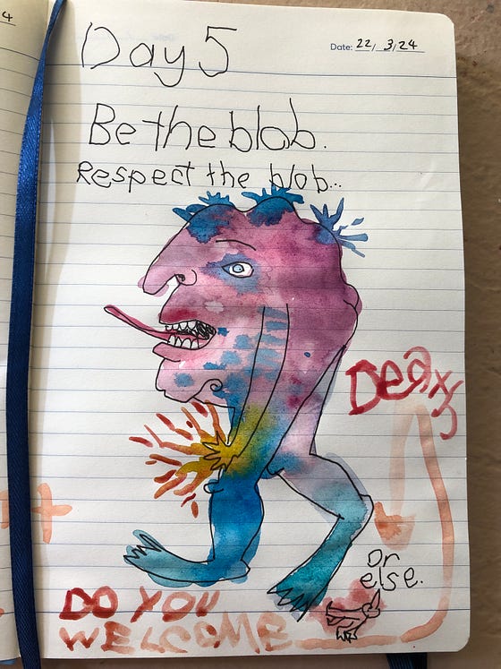 Day 5 of 100 days of drawing with my left hand. … 😂Not sure why my brain went this way today? Because I feel like a blob?