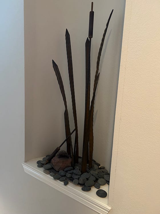 “Junk” art piece created by my Dad for the absurdly large art niche in the stairwell.