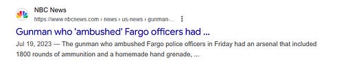 Just one example of thousands one could cite to show the subtle (often not so subtle) way the Mainstream downplays the problem of Muslims — the reports about the summer of 2023 shooting by a Muslim at an intersection in Fargo, North Dakota when the Muslim killed one policeman and wounded two others before being sent to Paradise by a fourth policeman. This was no minor incident, it could have been much worse. One has to go to a small localized webpage put out by the local police to get the disturbing facts: