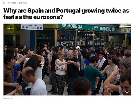 An interesting article by Euronews on the economic growth of the Iberian countries — Portugal and Spain. While their performance is not extraordinary, they can still be considered relative outliers within the European context.