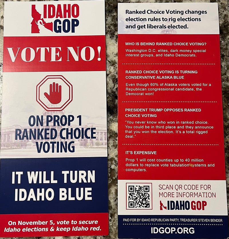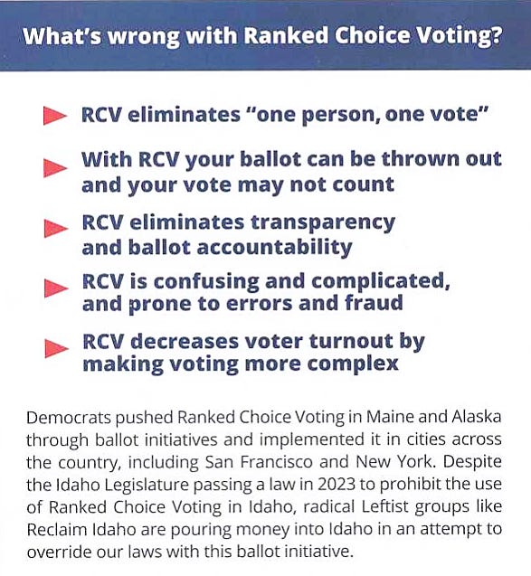 Proposition 1: Top-Four/Jungle Primaries + Ranked Choice Voting = Idaho Elections Disaster (posted 09/27/24)