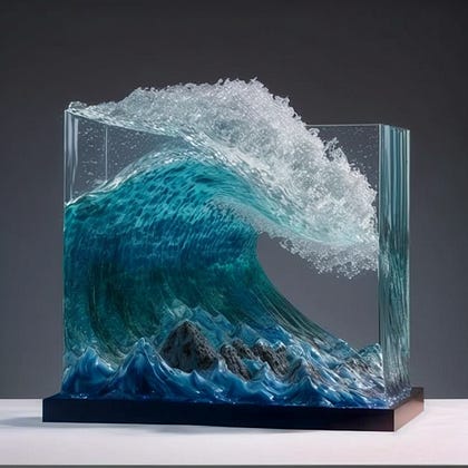 🌊🔲 Embrace the beauty of the ocean in an unexpected form with this image prompt for #ArtifAIry's Weekly Contest #14. The glass sculpture of a big ocean wave captures the magnificent power and grace of the sea. This delicate, translucent representation of the ocean's might is a testament to the artist's ability to render nature's formidable beauty in glass. Experience the captivating #Midjourney through oceanic beauty and artistic craftsmanship. #AIart #GlassSculpture #OceanWave midjourney.com/app/jobs…